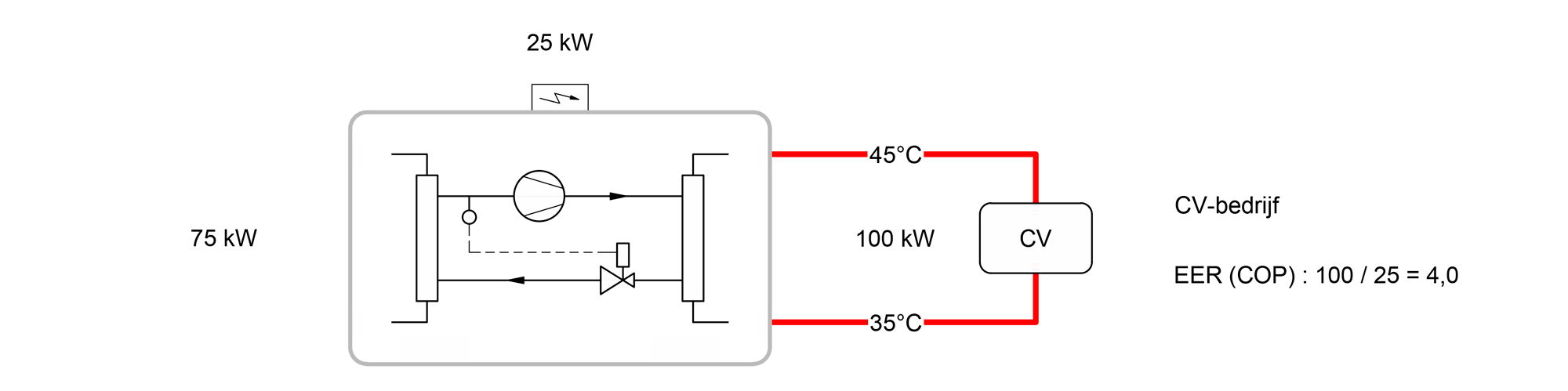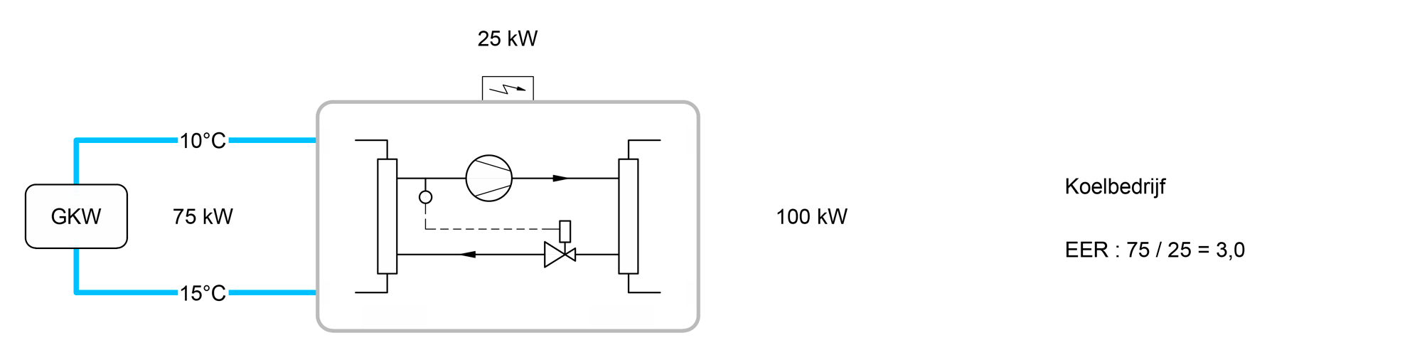 Bij koeling wordt warmte vanuit het gebouw afgevoerd. Het rendement van dit proces wordt uitgedrukt met de EER-waarde, die aangeeft hoeveel koeling wordt verkregen per eenheid elektriciteit.